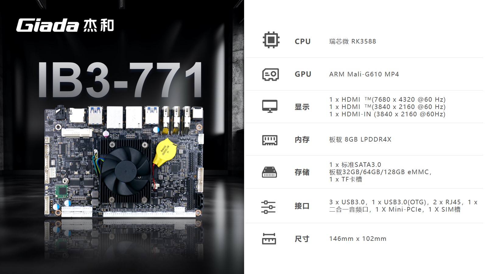 本次CA88(中国区)科技高交会展示的工业计算机主板IB3-771、IB3-761搭载了Rockship的芯片,可应用于工业自动化、物联网解决方案和汽车系统,已经被多数客户部署在工厂车间以及物联网生态系统的智能设备中。