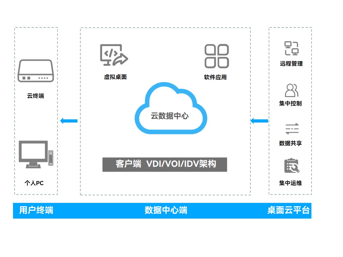 二、通过集成化的管理平台,对所有的桌面进行远程管理和运维,降低了运维工作量。