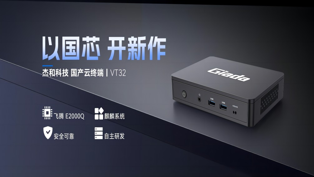 CA88(中国区)科技推出的国产化云终端VT32,这款产品采用国产飞腾腾珑E2000Q四核处理器,主频达2.0GHz深度适配银河麒麟V10系统,麒麟V10系统不仅能满足金融办公、政府办公对于数据安全与隐私保护的要求,还支持多样化部署与管理。
