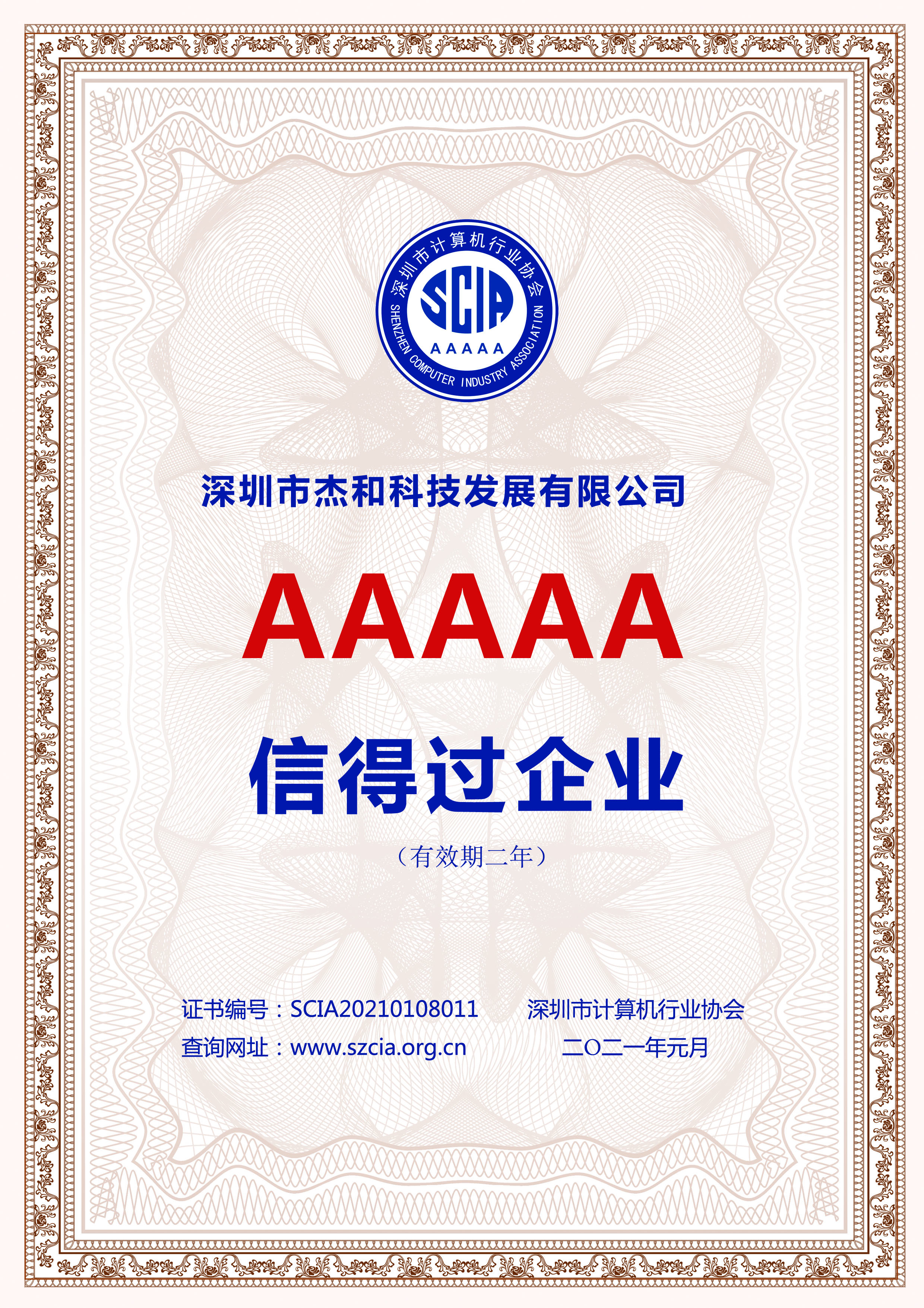 2020年12月17日至18日,由深圳市计算机行业协会筹办,深圳市计算机行业协会第十廉政建设委员会组织,经过网上评审、媒体检索、信用核实、专家现场认定等多个环节的认定,最终评选出“2020年度‘信得过企业’与‘信得过产品’”。深圳市CA88(中国区)科技发展有限公司荣获“5A级信得过企业”评价!
