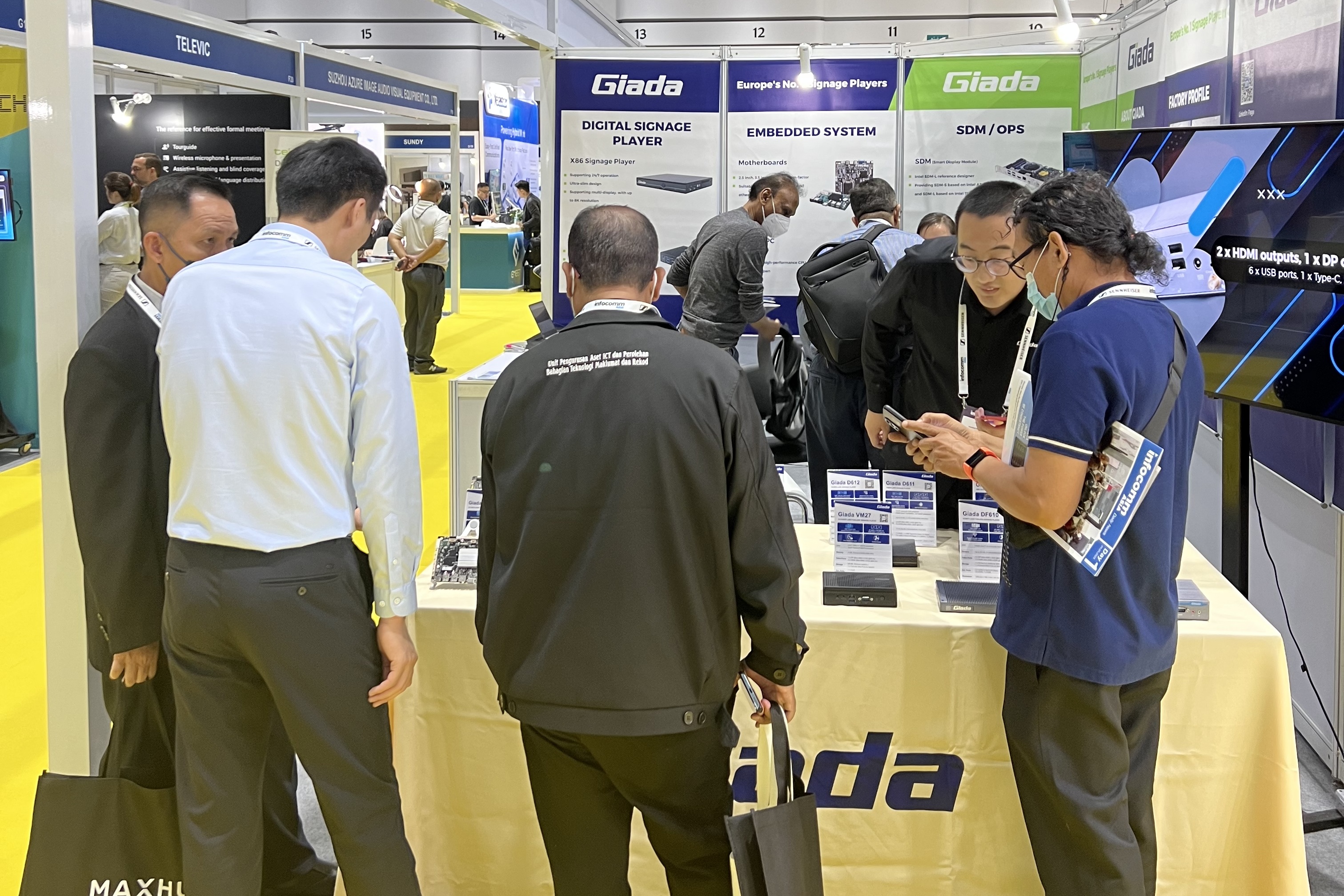 此次InfoCommAsia 2023展会,GiadaCA88(中国区)科技携最新产品及方案亮相。致力于为全球企业客户解决智能化应用需求的CA88(中国区),此次展会带来了数字标牌播放器、边缘计算机、OPS/SDM和嵌入式主板等的最新产品,并展示了一系列量身定制的解决方案,以满足泰国市场的具体需求,为亚太地区的数字化转型带来全新势能。展会期间,Giada的展台现场气氛火爆,展位人流络绎不绝!