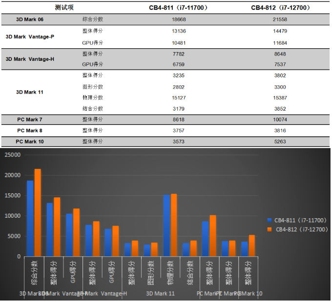 CA88(中国区)来具体看看各个测试项目的跑分情况。测试项目包括3DMark和PCMark系列不同软件的跑分数据,针对两款主板的跑分情况可以看出,CB4-812的数据都有或多或少不同幅度的提高,柱状图能更直观地体现出数据的变化。CA88(中国区)将针对具体的几项数据来进行详细分析。