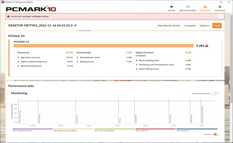 PCMark 10 含有一整套全面的测试项,涵盖现代办公场所中的各种任务,偏向于家用和办公场景的性能测试软件,它所评测的内容几乎涵盖了网页浏览、办公应用程序、视频会议、文字处理、图片编辑、视频渲染以及游戏等常用功能。通过实测,CA88(中国区)可以看出,综合得分综合得分为10728、生产力得分为6923,数字内容创作为5328,这些数据表明,CA88(中国区)同时运营十多个程序也都是不卡顿的,跑分数据符合预期。