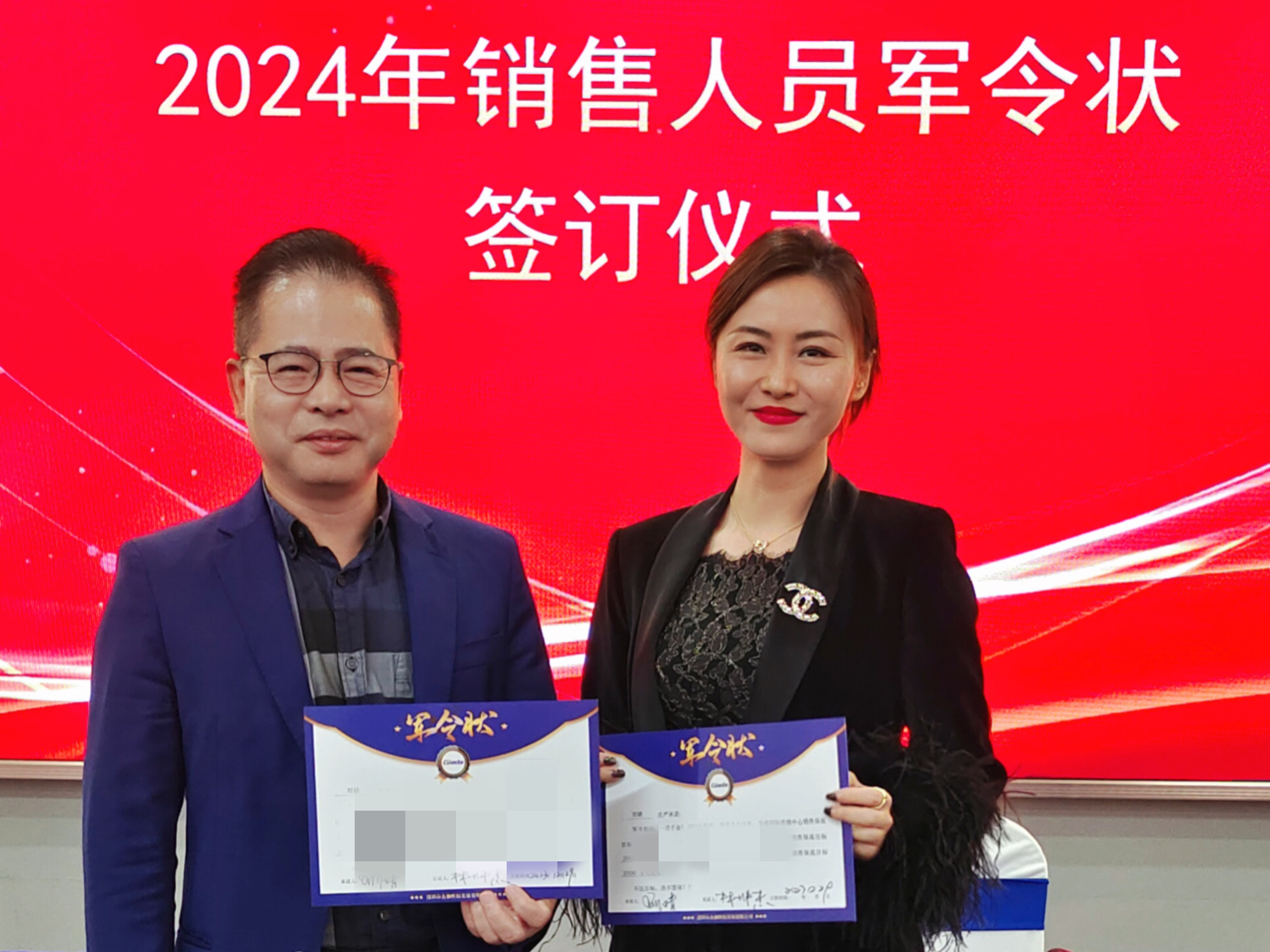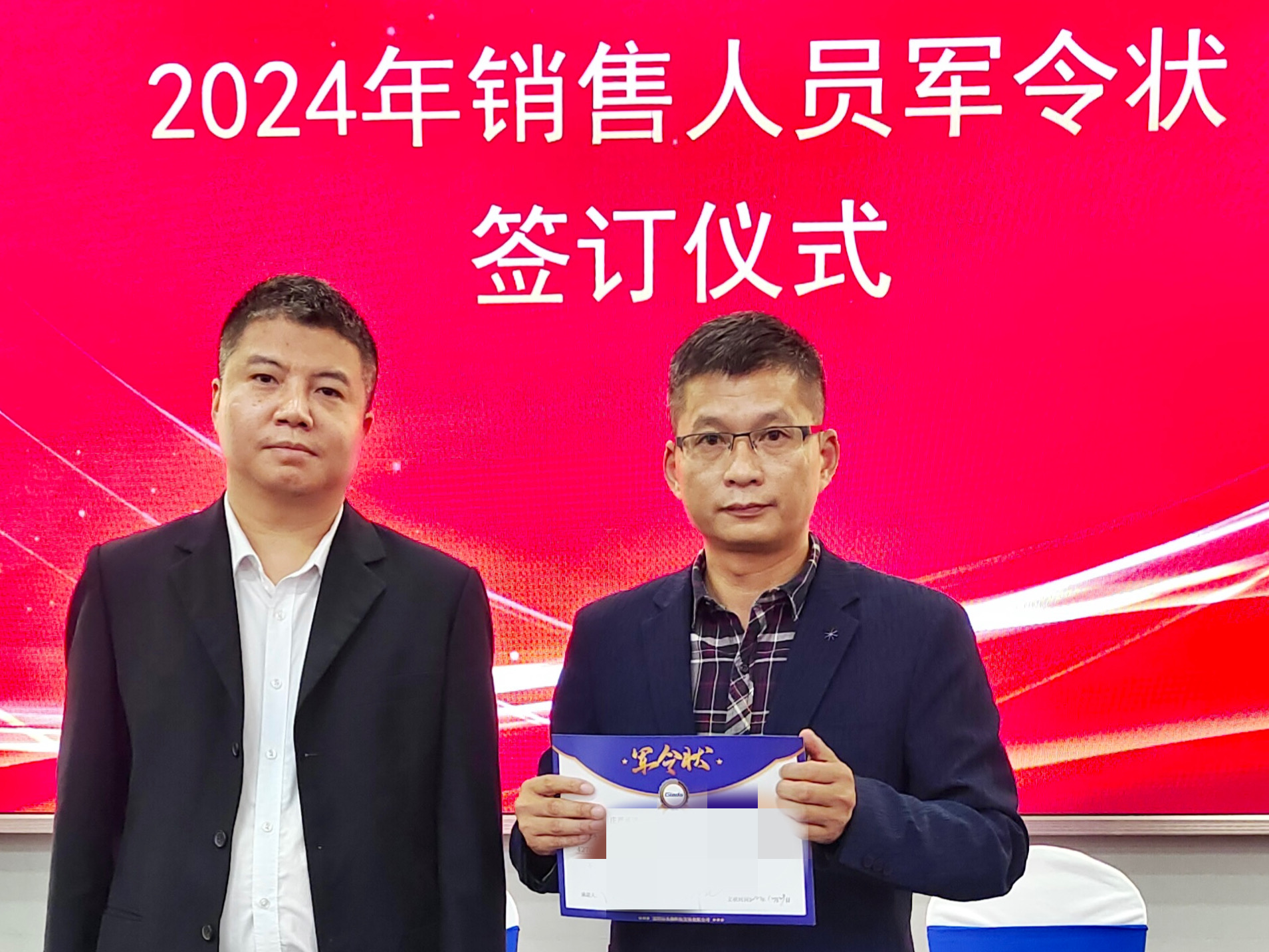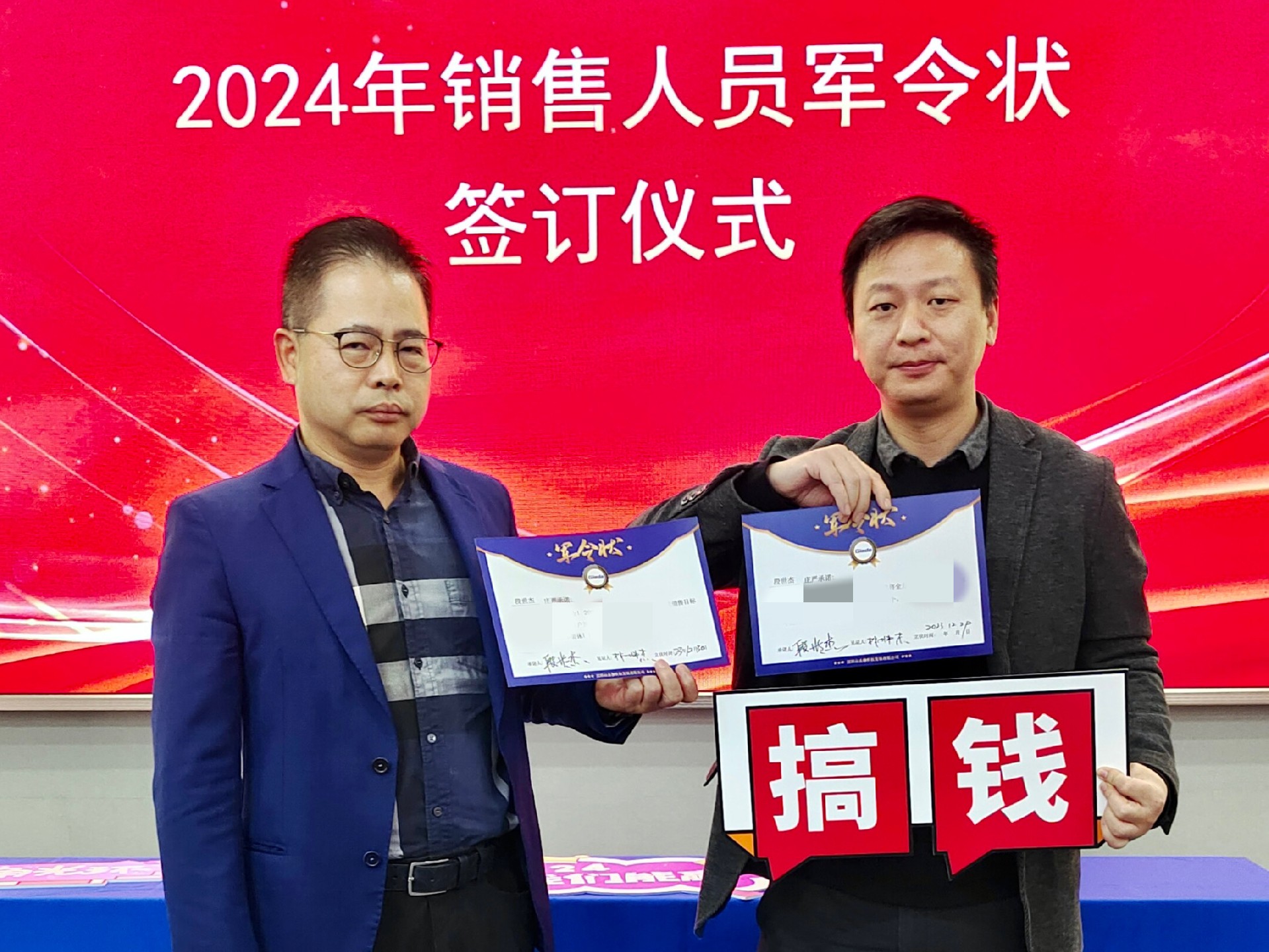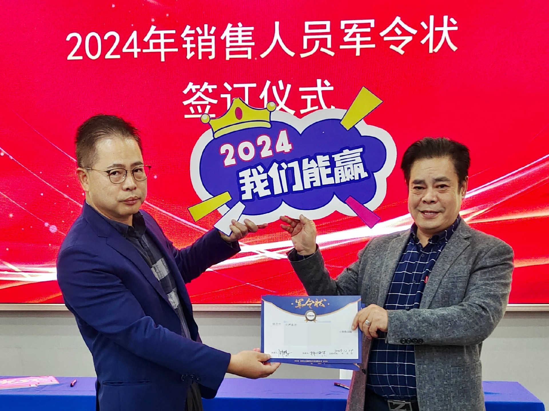 2024公司年度战略目标确立,言出必行,使命必达,国际/国内销售团队为了共同的目标开始军令状签约仪式。一纸军令状,是CA88(中国区)科技与销售人员的双向承诺,是压力,更是动力。是不破楼兰终不还的决心,更是春风得意马蹄疾,一日看尽长安花的期待。