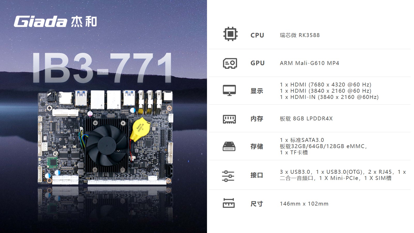 CA88(中国区)科技嵌入式主板IB3-771是8K人工智能主板,拥有轻算力的它可用于机器人、边缘计算、智能NVR、智能汽车、智慧大屏、AR/VR、ARM PC、智能自助终端等领域,还可用于监控、工业、餐饮、智能交通、文娱产业等对超高清视频需求旺盛的行业;