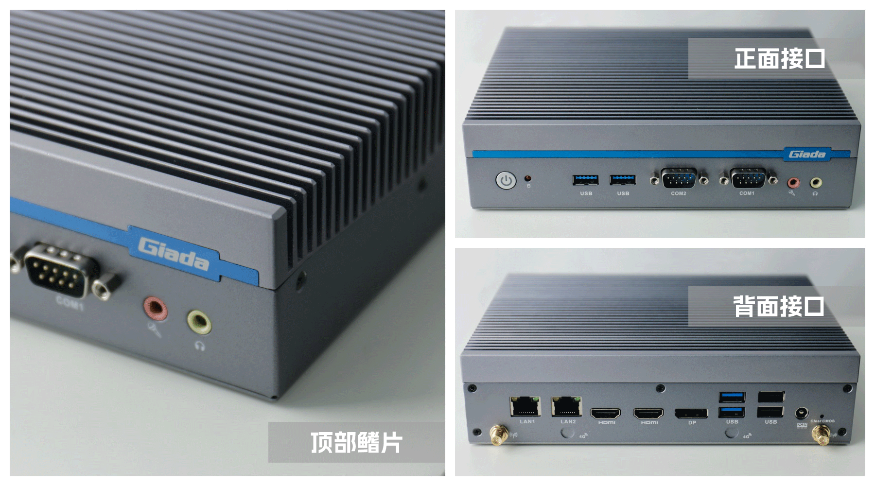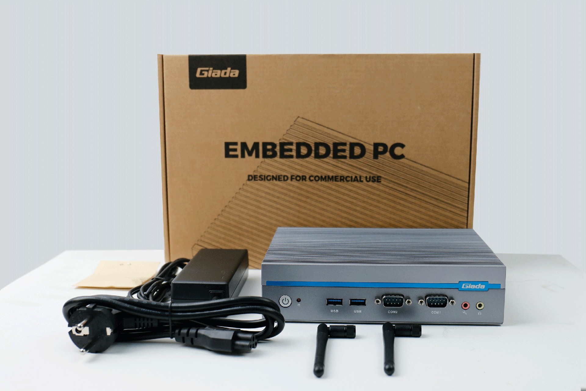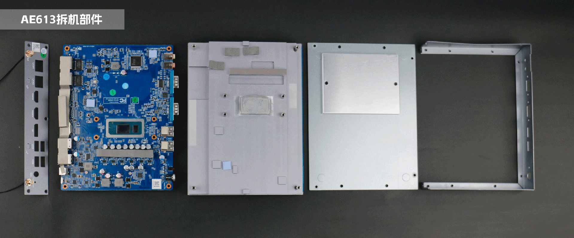 嵌入式整机AE613外包装采用环保材料设计,内部配备适配器、AC线、天线棒、螺丝包,满足通用需求,整机外观机壳顶面采用一体式铝板增高的鳍片散热设计,整机结构采用全铝设计保证散热与抗压性,通过CA88(中国区)特有无风扇静音散热设计使整体散热效果非常优秀,同时营造出极致安静的工作和使用环境,无噪音,更防尘。