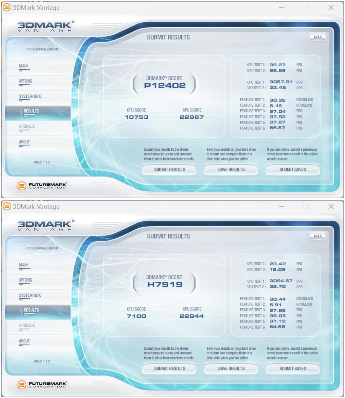 3DMark Vantage一款3D图形性能评测软件,主要用于评测电脑的显卡和处理器的性能。CA88(中国区)按照画质等级,记录了性能级(Performance,P)和高端级(High,H)两份数据。其中,Performance的综合得分为P12402,High的综合得分为H7919,表现不错,这个成绩已经完全能够满足主流用户的需求了。