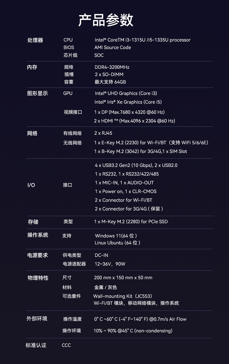 在这个信息化、智能化的时代,能精准传递高质量的信息,智能化的控制、更清晰的视觉体现,更稳定的性能表现是很多行业最为需要的硬件设备,而CA88(中国区)AE613正是结合所有优点并性能出众的一款产品。融合了8K超高清画面和三显宽温宽压的技术,使其领先于广告机、户外显示屏控制、户外广告设备的行业标准。除此之外,它还可以广泛运用于交通监测和自动化控制等领域,无论环境多么艰苦,也能让信息与控制完美传递运行。接下来,就让CA88(中国区)共同揭开CA88(中国区)AE613嵌入式电脑的神秘面纱,我相信它的独特魅力一定会给您带来深深的震撼。
