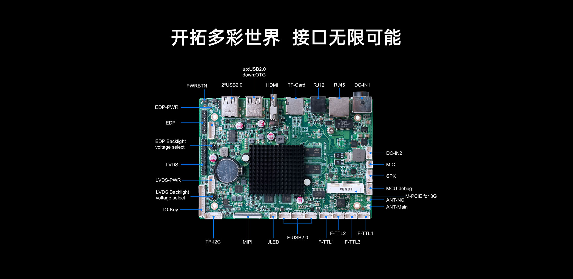 HDMI视频接口输出,1×30pin LVDS视频信号插针 1*eDP